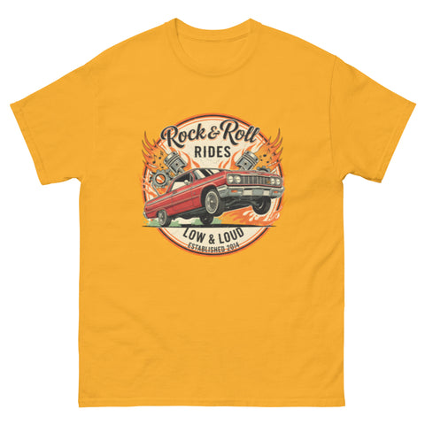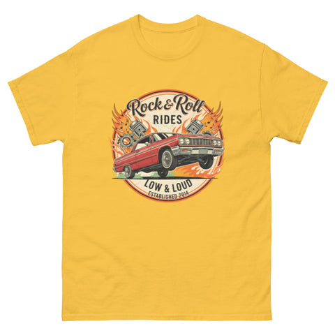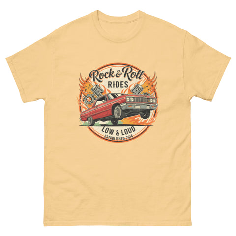 The Gildan 5000 Classic Tee gives a structured look that elevates the basic t-shirt. Its sturdy cotton fabric keeps edges crisp, holds shape through repeated washes, and layers perfectly for streetwear looks. Add your design for a long-lasting tee that feels timeless and chic. 100% cotton. Sport Grey is 90% cotton, 10% polyester. Ash Grey is 99% cotton, 1% polyester. Heather colors are 50% cotton, 50% polyester. Fabric weight: 5. 0–5. 3 oz/yd² (170–180 g/m²). Pre-shrunk jersey knit. Open-end yarn. Tubular construction. Taped neck and shoulders. Double seam at sleeves and bottom hem. Tear-away tag. Blank product sourced from Honduras, Nicaragua, Haiti, Dominican Republic, Bangladesh, and Mexico. Disclaimers: . Due to the fabric properties, the White color variant may appear off-white rather than bright white. Dark color speckles throughout the fabric are expected for the color Natural. Important: The supplier of this product is switching to a new single collar topstitch, so you might receive a mixed stock of both single and double topstitch shirts for some time. This product is made on demand. No minimums.