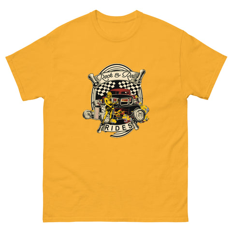 The Gildan 5000 Classic Tee gives a structured look that elevates the basic t-shirt. Its sturdy cotton fabric keeps edges crisp, holds shape through repeated washes, and layers perfectly for streetwear looks. Add your design for a long-lasting tee that feels timeless and chic. 100% cotton. Sport Grey is 90% cotton, 10% polyester. Ash Grey is 99% cotton, 1% polyester. Heather colors are 50% cotton, 50% polyester. Fabric weight: 5. 0–5. 3 oz/yd² (170–180 g/m²). Pre-shrunk jersey knit. Open-end yarn. Tubular construction. Taped neck and shoulders. Double seam at sleeves and bottom hem. Tear-away tag. Blank product sourced from Honduras, Nicaragua, Haiti, Dominican Republic, Bangladesh, and Mexico. Disclaimers: . Due to the fabric properties, the White color variant may appear off-white rather than bright white. Dark color speckles throughout the fabric are expected for the color Natural. Important: The supplier of this product is switching to a new single collar topstitch, so you might receive a mixed stock of both single and double topstitch shirts for some time. This product is made on demand. No minimums.